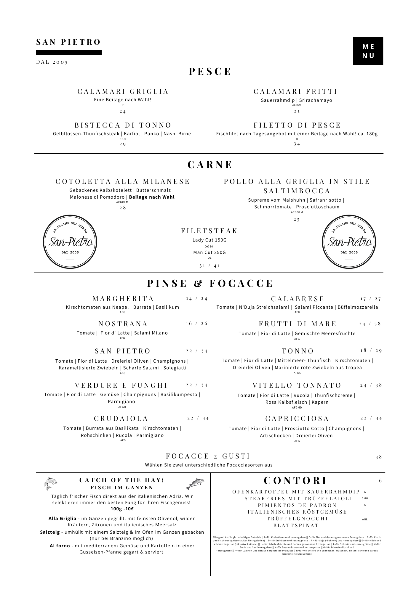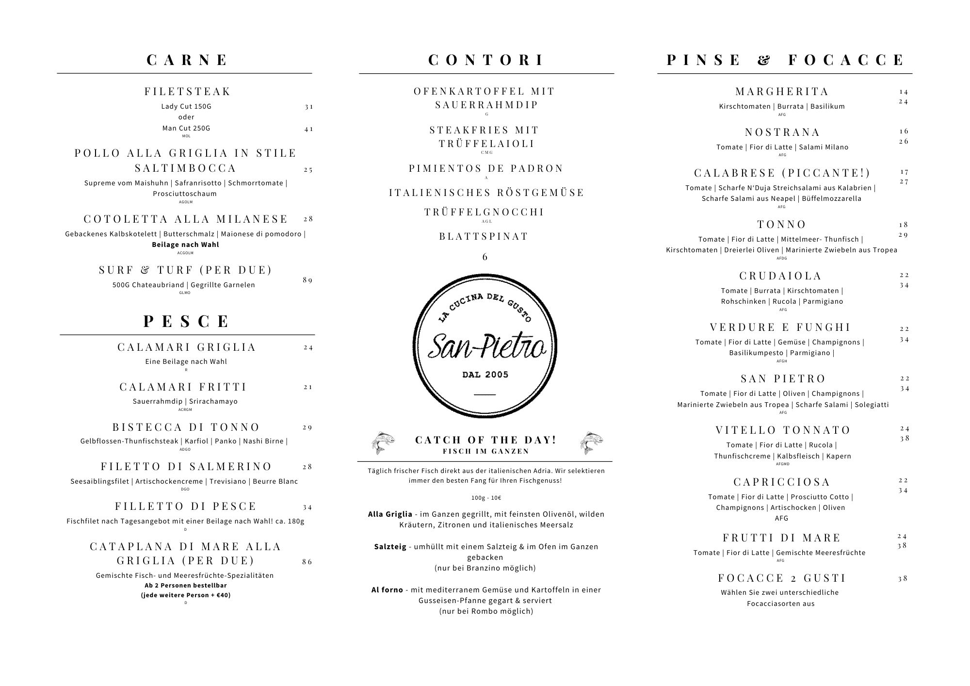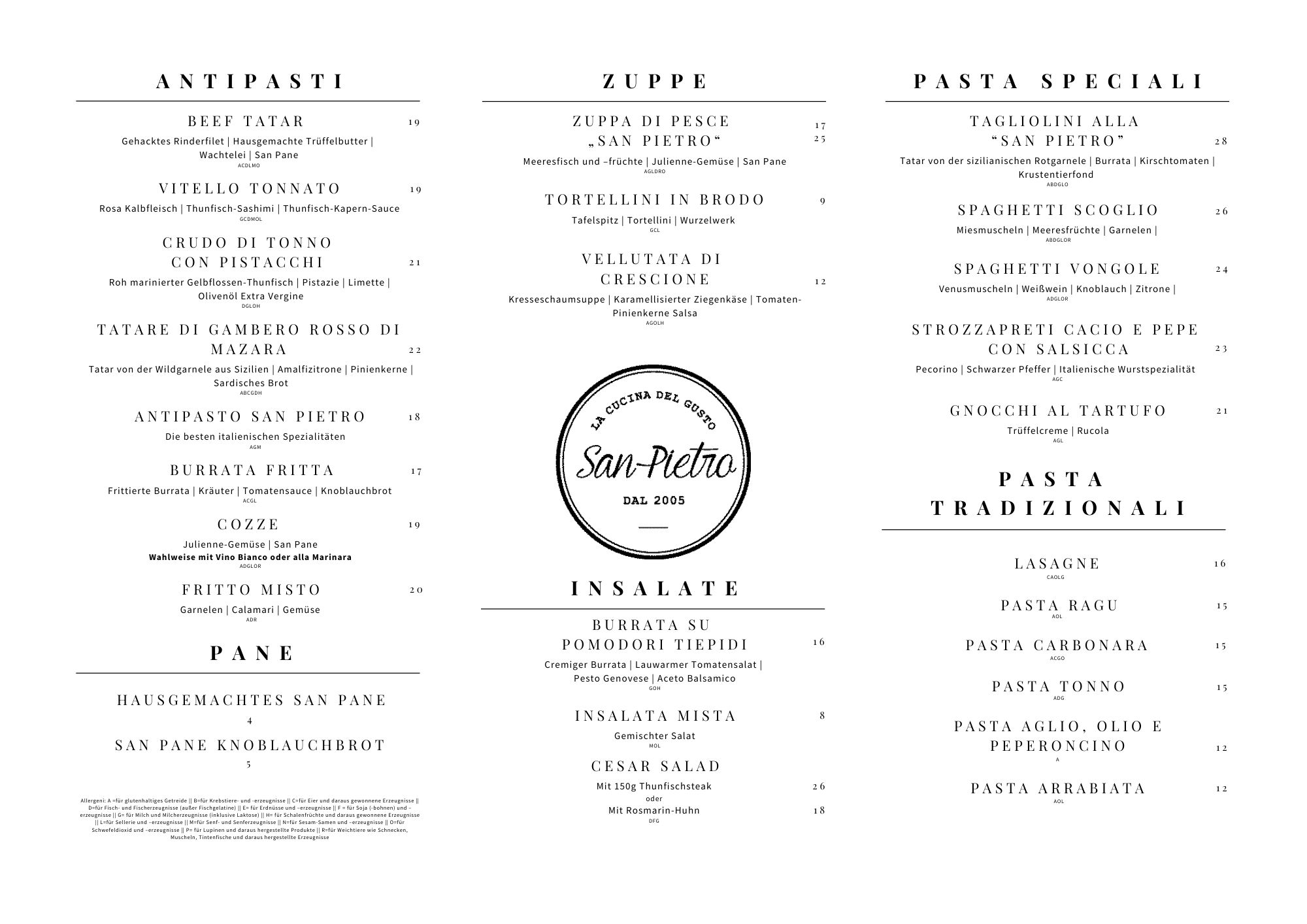 Speisekarte San Pietro