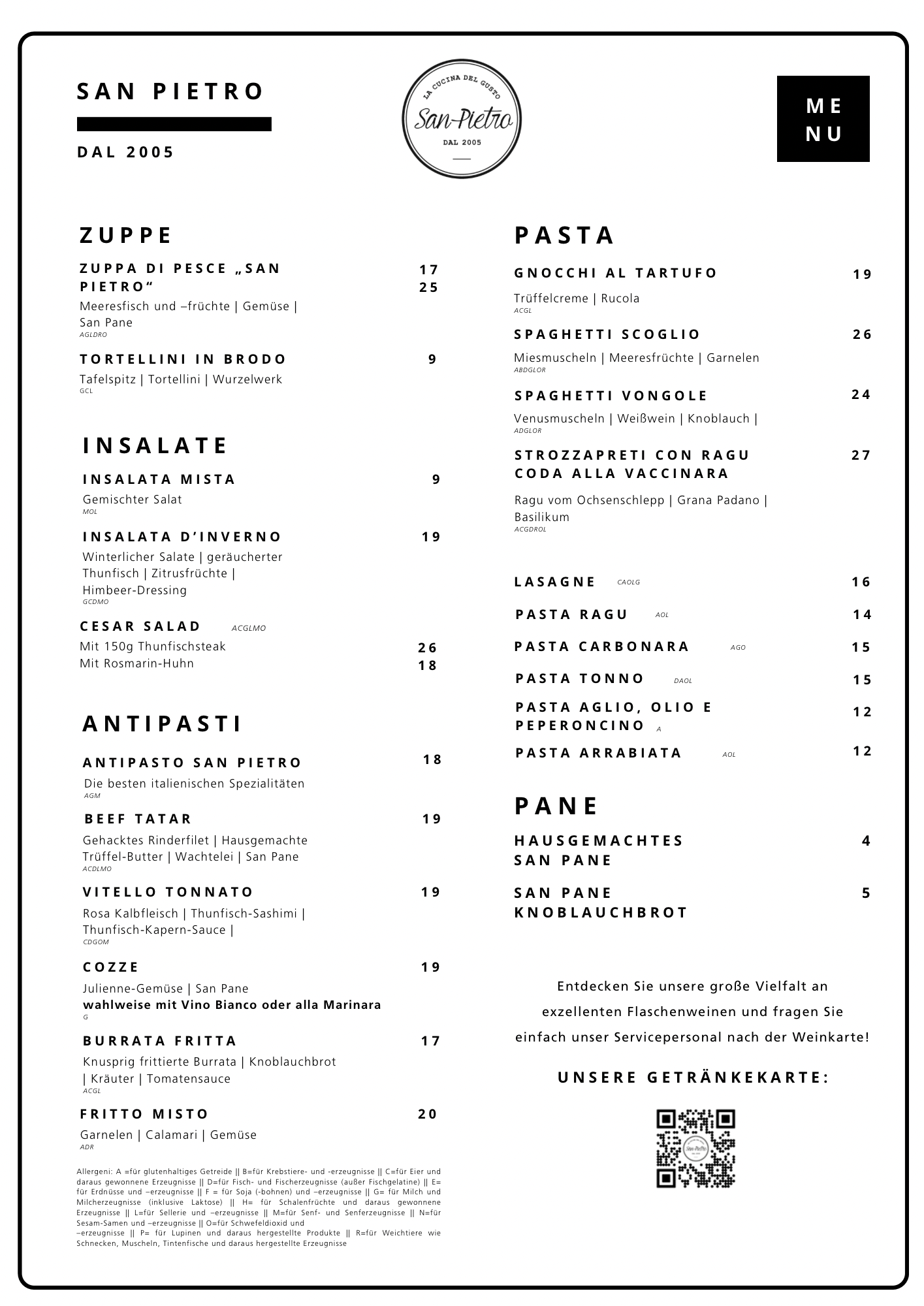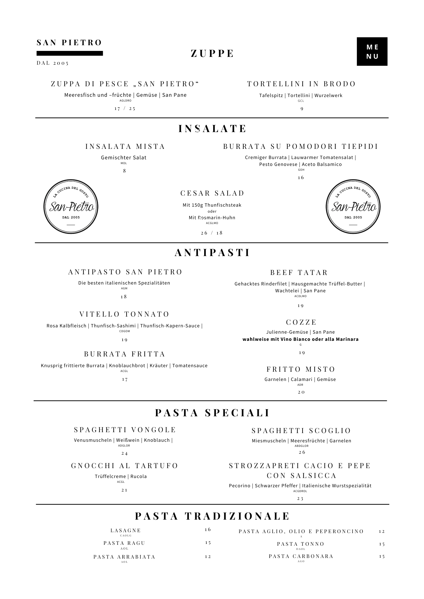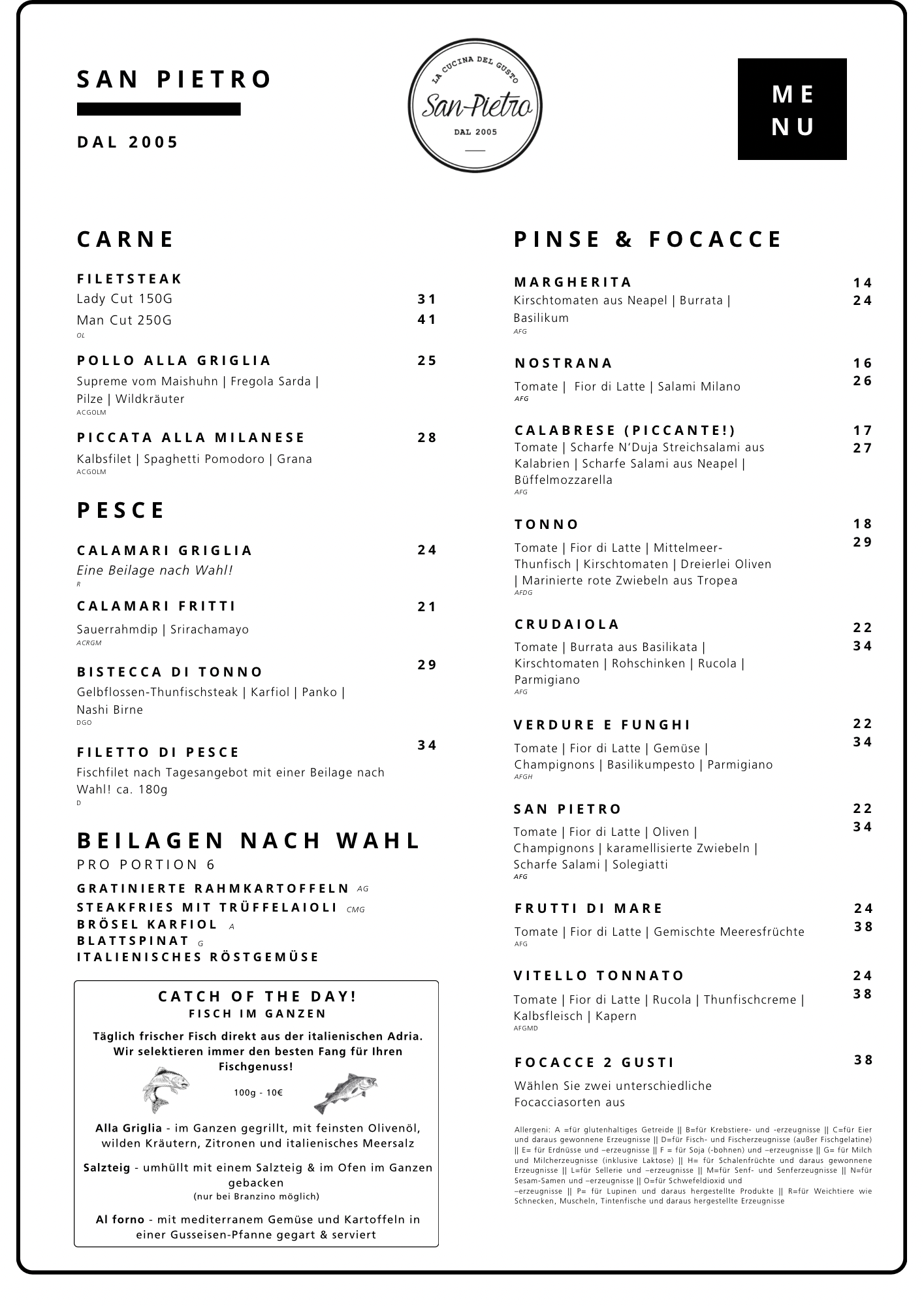 Speisekarte San Pietro