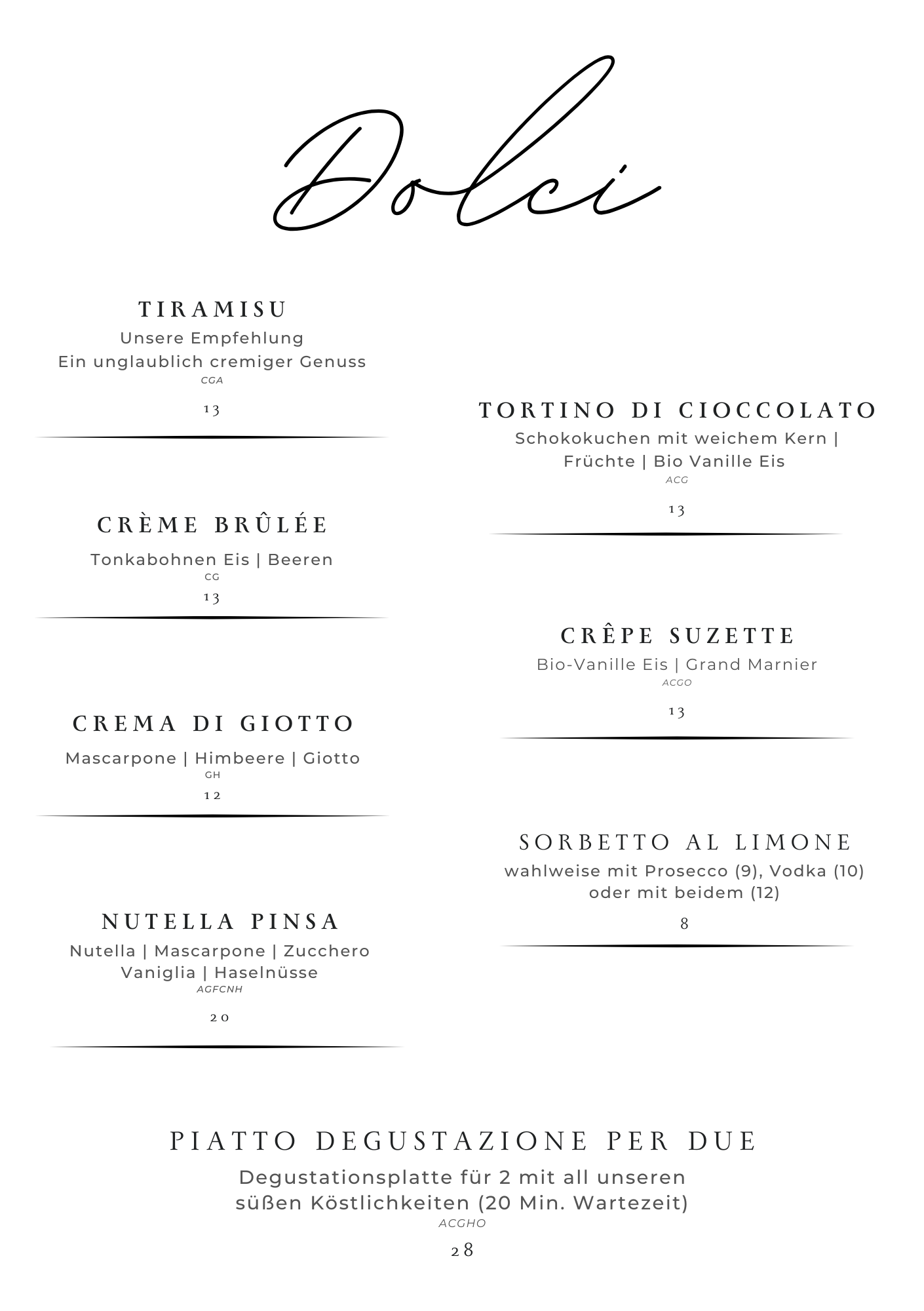 Dessertkarte