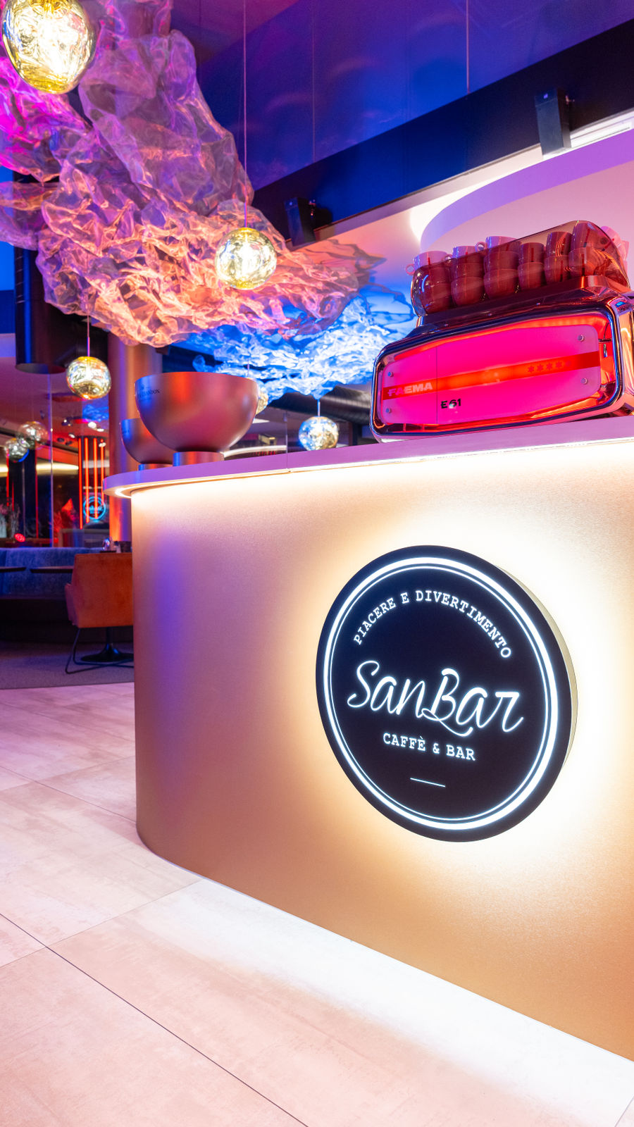 Tagsüber genießen Sie köstlichen italienischen Caffè in entspannter Atmosphäre. Am Abend lädt die San Bar zu After-Work-Drinks ein – stilvoll, leger und mit einem Hauch italienischer Lebensfreude.